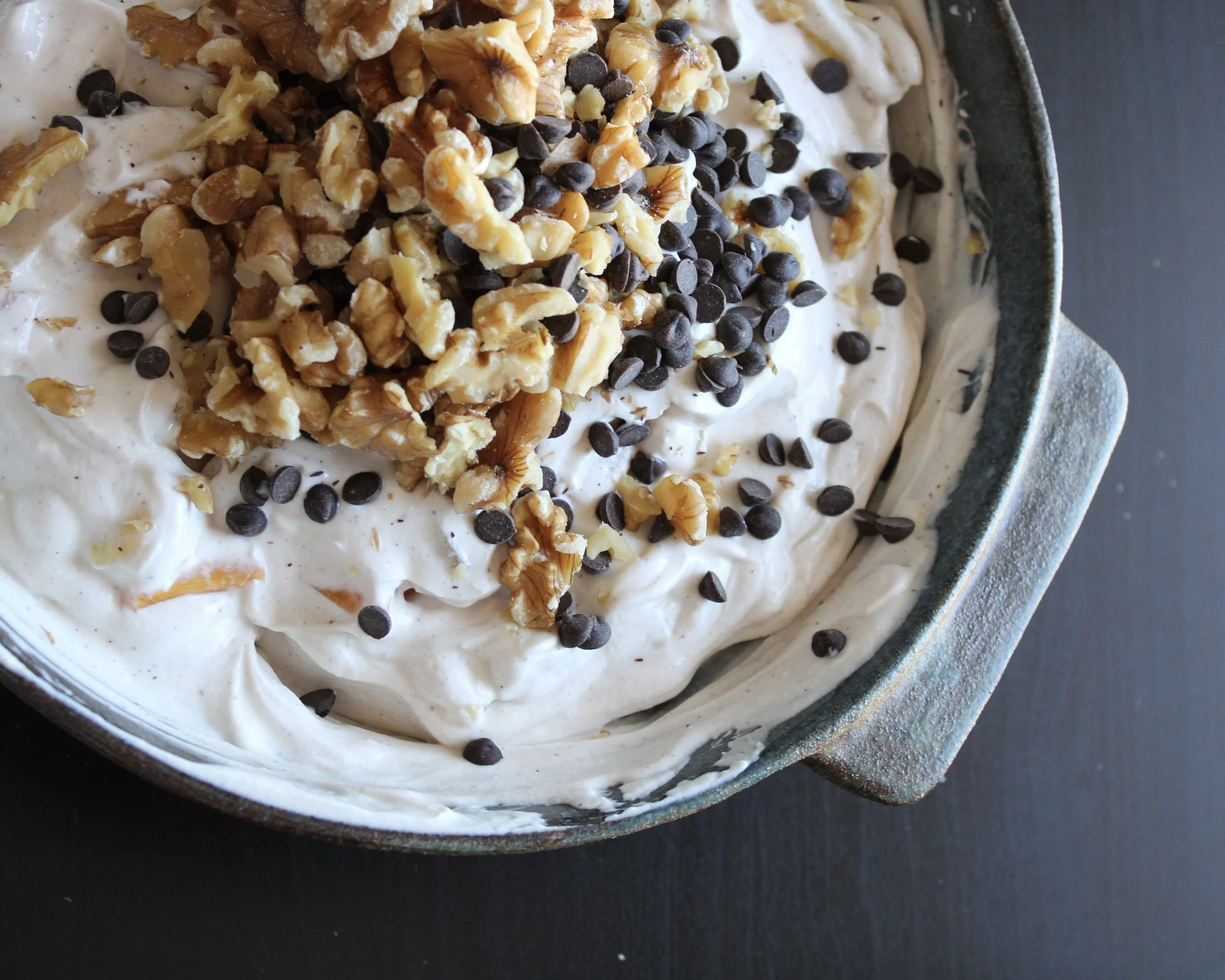c.Finish with crunchy walnuts and chocolate shavings to taste.