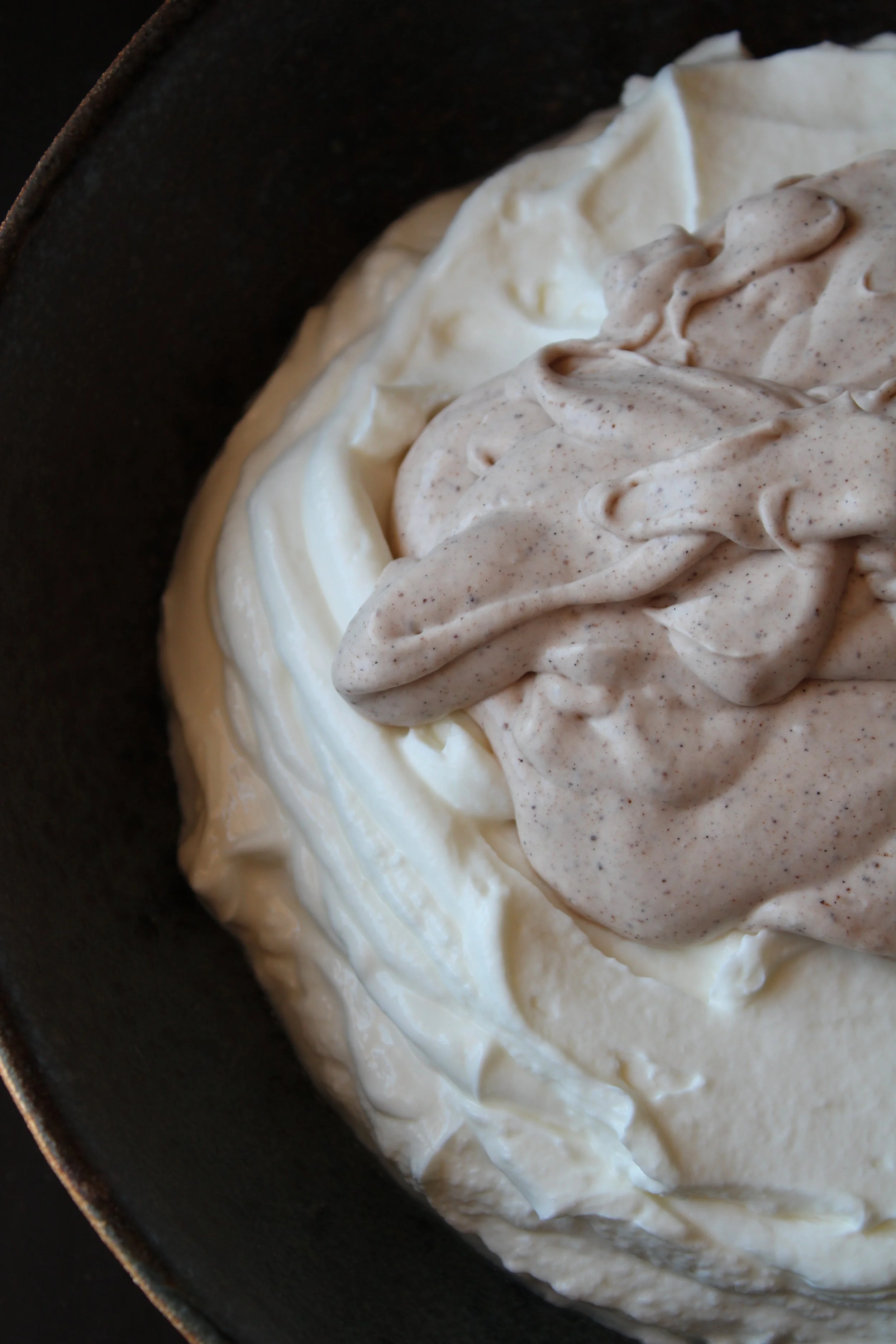❋ Methoda.Lightly whip the cream with the vanilla sugar until soft and smooth. Gently fold it into the Greek yogurt using a spatula, with slow movements from the bottom upwards, to keep the texture light and airy.